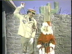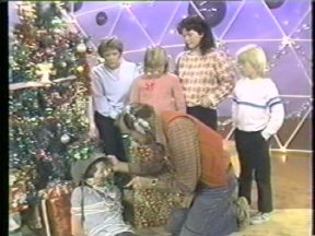 | Episode #69 cast: Alasdair Gillis, Abby Hagyard, Vanessa Lindores, Les Lye, Christine McGlade, Doug Ptolemy, Lisa Ruddy writers: Roger Price, Geoffrey Darby, Richard Cooper director: Brenda Mason ps: Rudolph The Red Nosed Reindeer Joins The A-Team The gang celebrates the holiday as Alasdair buys an overabundance of mistletoe in an attempt to get a kiss. green slime: Lisa water: Alasdair production: A Merry Little Production quality: "B" This is a copy that I received in trade. Fairly good picture and sound. (No commercials are included) |