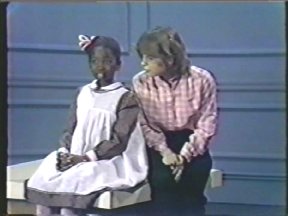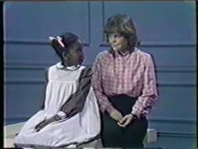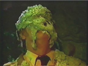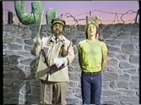 Episode #17 cast: Angie Coddett, Jono Gebert, Les, Lye, Christine McGlade, Lisa Ruddy, Kevin Schenk, Steve Wilson writers: Geoffrey Darby, Roger Price and the cast and crew director: Geoffrey Darby ps: Jaws Meets The Love Boat Christine spends the entire show with a phone on the link set, waiting for her boyfriend, Niegel, to call her. Of course he never does! Lots of dungeon and firing squad sketches with a very tall Jono Gebert. Features a very young Lisa Ruddy who gets her braces locked while kissing Steve Wilson. Interviews include kids (non-cast members) telling jokes. green slime: Les production: A Wrong Number production quality: "A" This is a copy that I received in trade. Fairly good picture and sound. (No commercials are included) |