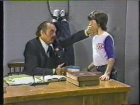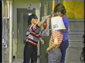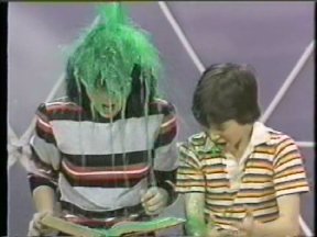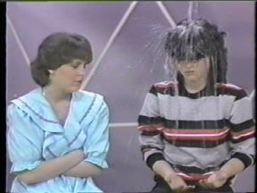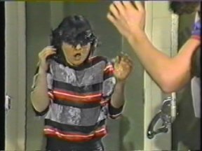 Episode #42 cast: Alasdair Gillis, Abby Hagyard, Kevin Kubusheskie, Vanessa Lindores, Christine McGlade, Les Lye, Lisa Ruddy writers: Roger Price and Geoffrey Darby director: Geoffrey Darby ps: Laverne and Shirley Go to Finishing School Christine goes through a book of manners written by the producers of the show, and Alasdair wears the same shirt from the 1982 "Justice and Injustice" episode. water: Christine (2) green slime: Christine production: (none) quality: "A" This is a copy that I received in trade. Fair picture and sound. (Original commercials are included) |