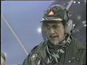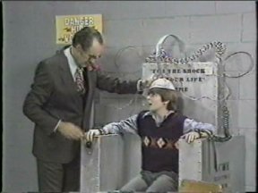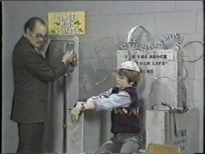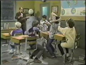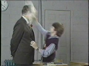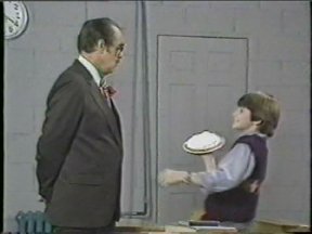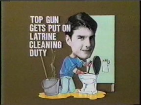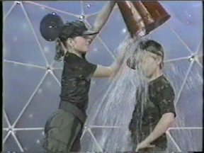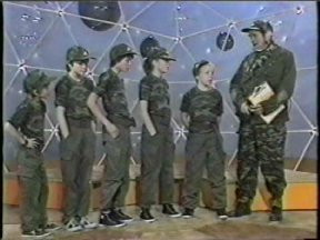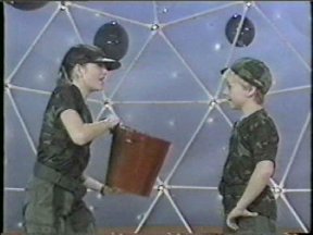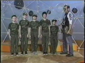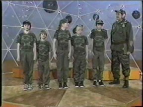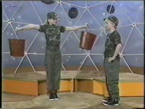 Episode #107 cast: Amyas Godfrey, Matthew Godfrey, Abby Hagyard, Vanessa Lindores, Les Lye, Doug Ptolemy, Adam Reid writers: Roger Price and Josh Morris director: Brenda Mason ps: Top Gun Gets Put On Latrine Cleaning Duty In order to promote discipline, Ross becomes a drill sergeant on the set. water: Vanessa, Doug green slime: Matthew, Amyas pie: Les production: Discipline & Punishment quality: "B" This is a copy that I received in trade. Good picture and poor sound. (Includes original commercials) |