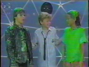 Episode #138 cast: Les Lye, Abby Hagyard, Ted Wilson, Amyas Godfrey, Chris Bickford, Jill Stanley, Amy Stanley, Kevin Ward writers: Roger Price and Adam Reid director: Gerben Heslinga ps: Rambo Takes Ballet Lessons In an attempt to embarrass the kids, Ross invites their parents to the studio. water: Chris, Jill green slime: Kevin, Jill, Chris coffee: Chris, Amyas, Ted, Kevin production: Hope None Of My Friends See Me quality: "A" This is a copy that I received in trade. (Original commercials are included) |