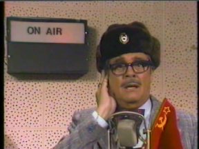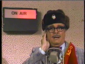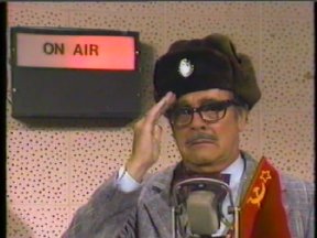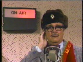 Episode #98 cast: Stephanie Chow, Matthew Godfrey, Abby Hagyard, Les Lye, Alanis Morissette, Chris Nolan, Adam Reid writers: Roger Price and Josh Morris director: Brenda Mason ps: Hulk Hogan vs. Punky Brewster in Mismatch of the Century Ross and the gang prepare for the arrival of the Soviets and their new show, "Don't Do That On Television, Comrade." The Soviets drop "red" slime! water: Les green slime: Adam, Matthew red slime: Adam, Les pie: Les, Chris, Alanis, Stephanie, Adam, Matthew production: Soviet Workers quality: "A+" One of my original copies. Excellent picture and sound. (Original commercials are included) |
