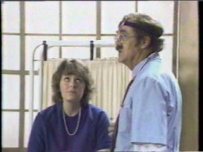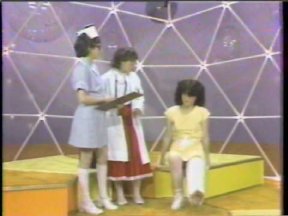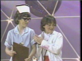 Episode #43 cast: Alasdair Gillis, Abby Hagyard, Kevin Kubusheskie, Les Lye, Christine McGlade, Luke McKeehan, Lisa Ruddy writers: Roger Price, Geoffrey Darby, Derek Diorio, Rick Jones, Dan Lalonde, Brian Nichol director: Geoffrey Darby ps: General Hospital gets busted to Private Room Christine breaks her leg right before the show starts, and she hosts with a cast on her leg, but Doctor Lisa and Nurse Luke take good care of her. Alasdair wears the same shirt (again) from the "Bad Habits" episode (which also appeared in the 1982 "Justice and Injustice" episode). water: Christine (3) green slime: Christine cannon: Christine production: Sick, Sick, Sick quality: "A" One of my original copies. good picture and sound. (Original commercials are included) |
