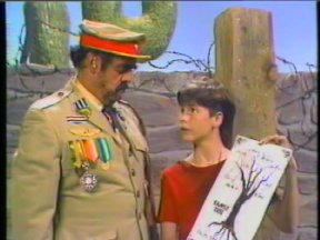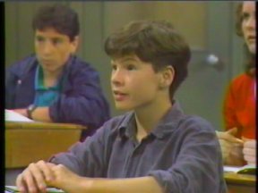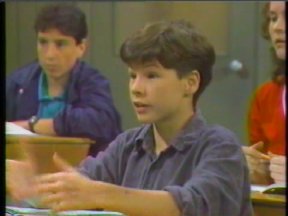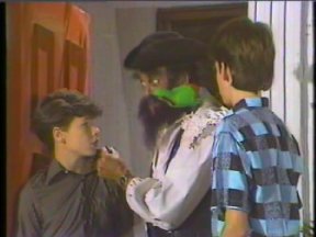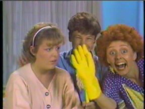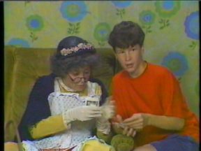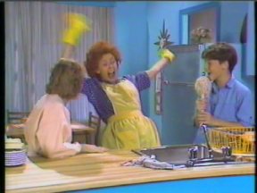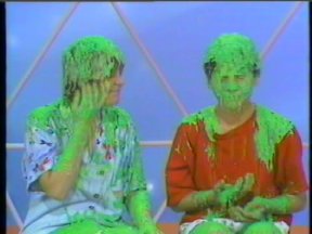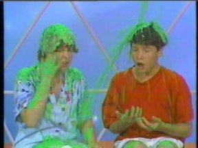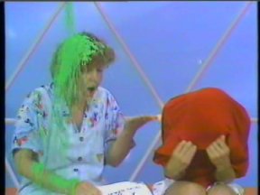 Episode #82 cast: Alasdair Gillis, Adam Kalbfleisch, Lisa Ruddy, Christine McGlade, Stephanie Chow, Abby Hagyard, Les Lye writer: Roger Price, Robert Black, Bill Prady, Terence Taylor, Josh Morris, Robert Sax director: Brenda Mason ps: Family Ties Tied Much Too Tight In this episode , Barth is on vacation and we get to meet Maw Maw Barth (Barth's mother) and Jon Paul (Barth's Frencd half-brother) all played by Les. Ross tries to uncover Alasdair's ancestry, claiming that he could be the only surviving relative of a dead millionaire. All of the kids find out they're related to Napoleon after Ross sells them bogus family trees. name dropping and product placement: @04:30 Alasdair is wearing Mickey Mouse ears while he and Christine play Monopoly @18:10 Alasdair is wearing a red sweatshirt with MTV on it other stuff: Adam does the show wearing a cast on his arm @06:00 Les plays 'Uncle Roger' in a front porch sketch. At SlimeCon 2002 Convention, Les tells of an incident that happened after the sketch. Les takes his sword and turns it around backwards where it is not sharp. Then he runs the blunt edge across his tounge. As you can imagine, this part was cut out of the network broadcast version. @11:50 Christine's real-life sister and brother are in this classroom sketch. Les plays the character of Grampa, whose name is Vance @16:10 Abby plays the character of Aunt Pooky @18:00 Alasdair reveals his middle name is Murray water: Adam green slime: Lisa, Alasdair production: Listen to Your Mother quality: "A+" One of my original copies. Excellent picture and sound. (Original commercials are included) |