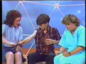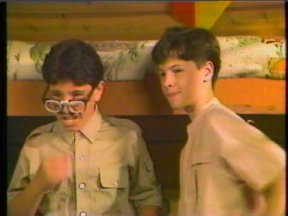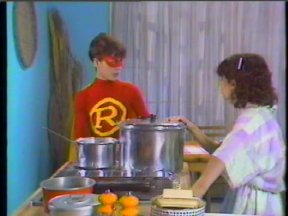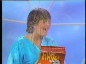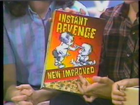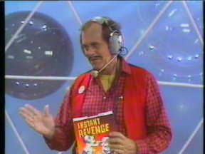Episode #84 cast: Marjorie Silcoff, Justin Cammy, Lisa Ruddy, Alasdair Gillis, Christine McGlade, Les Lye, Abby Hagyard writer: Roger Price, Robert Black, Bill Prady, Terence Taylor, Josh Morris, Robert Sax director: Brenda Mason ps: Rambo Shoots the Ayatullah Ross gets rich selling Instant Revenge to the cast members so that they can get revenge on each other. Alasdair moonlights as the 'Masked Revenger'. name dropping and product placement: 7UP can on the table at Barth's Burgery other stuff: @22:20 unknown actor sitting behind Christine in the classroom sketch water: Lisa (2) green slime: Alasdair pie: Les syrup: Justin milk: Alasdair jello: Alasdair ketchup: Alasdair ice cream: Christine production: Last Laugh quality: "A+" One of my original copies. Excellent picture and sound. (Original commercials are included) |